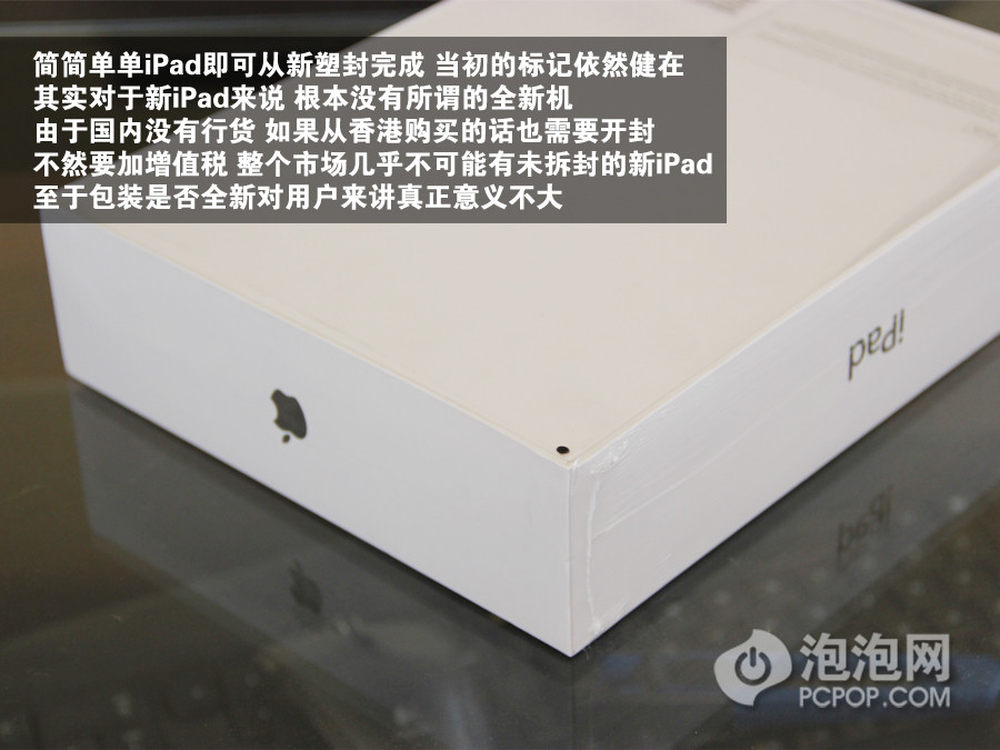 鉴于目前港行新iPad的现状,从新封膜也不是很么见不得人的事情。只不过,用户购买时还是要相当小心,仔细查看配件是否为原装货。