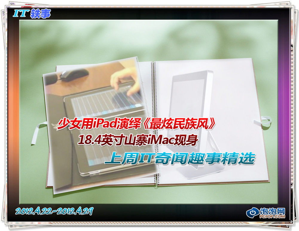 新一期的IT轶事又和大家见面了,上周的IT圈十发生了不少奇闻趣事:深圳厂商生产出18.4英寸iMac一体电脑,仿真度非常高;没有什么能阻止《最炫民族风》了,少女用iPad现场演绎新神曲!更多轶事请看文章详细内容。2/11
