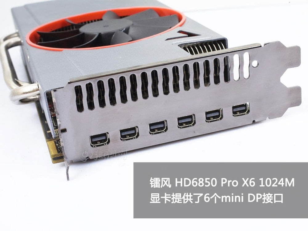 <p> 终于镭风在推出了Xstorm版和HD6850毒蜥版之后,推出了一款支持6联屏技术的镭风 HD6850 Pro X6 1024M。与之前发布的毒蜥版所不同的是,这款产品没有提供一键超频功能,而是主打多联屏技术,提供了6个mini-DP接口。可以通过单卡就能实现6联屏带来的巨幅画质体验。</p>