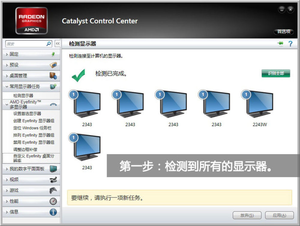 将六个显示器接好,安装AMD最新驱动这些就不用多说了。4/21