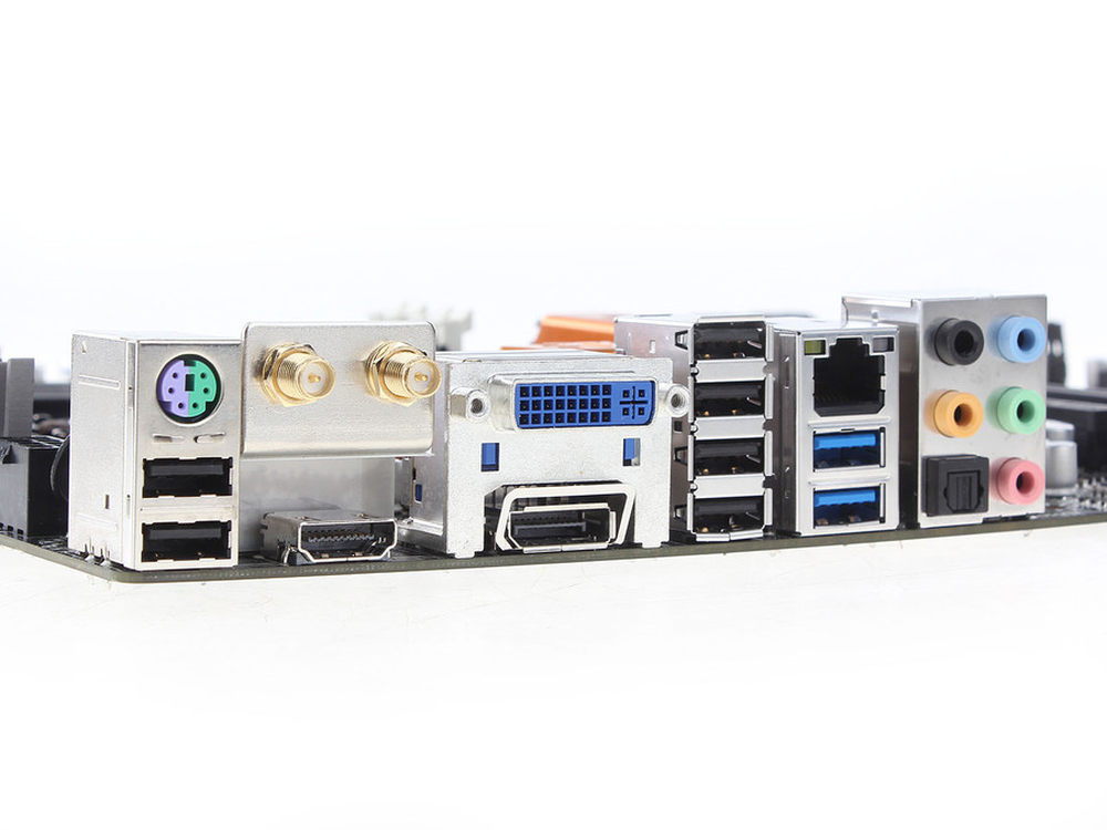 <p>索泰ZT-Z77皇冠版-U1D 主板I/O背板提供了1个PS/2接口、6个USB 2.0、2个USB 3.0、双SMA天线接口、千兆网卡接口、声卡接口以及DVI DP HDMI的输出接口。</p>7/13