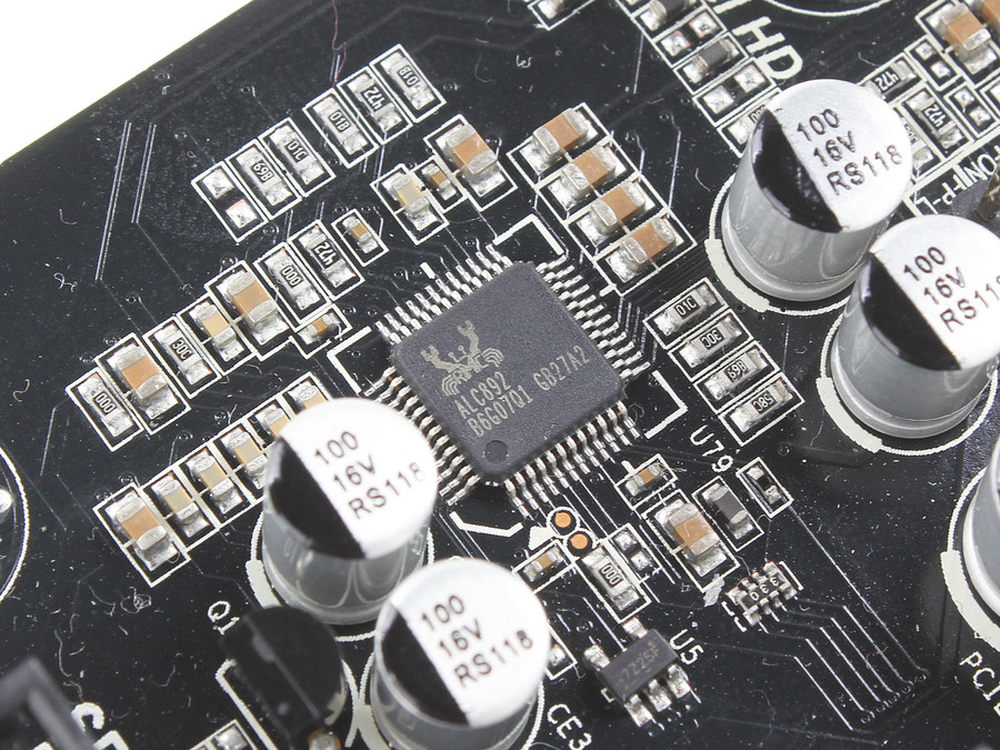 主板的板载声卡为Realtek出品的ALC892 7.1声道音效芯片,而前置的HD声卡接线就在声卡的旁边,据说这样能够保证前置音频接线音效输出的高杜比特。11/13