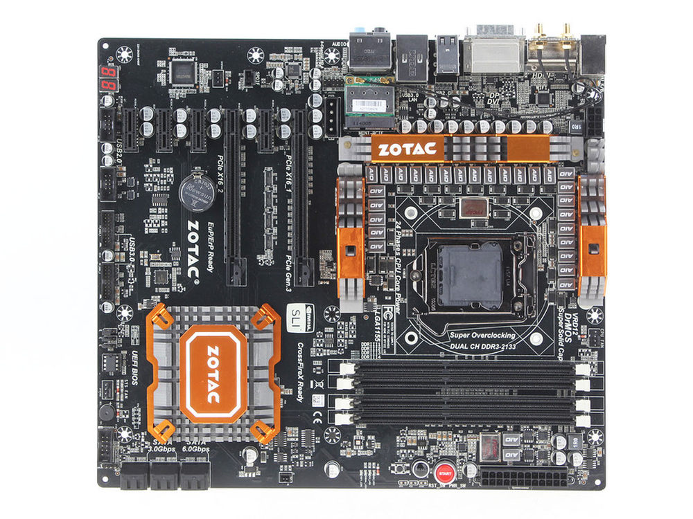新款索泰ZT-Z77皇冠版-U1D主板是索泰针对DIY玩家推出了高端定位产品,主板整体采用橙黑体系外观设计,PCB尺寸比一般的标准ATX主板要更大,在用料品质、功能规格上也比普通Z77主板有“双倍”加强,力图满足高端玩家的对品质和个性化的需求。3/13