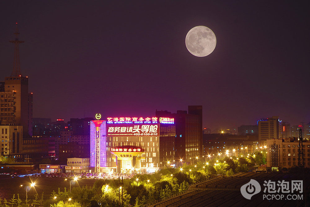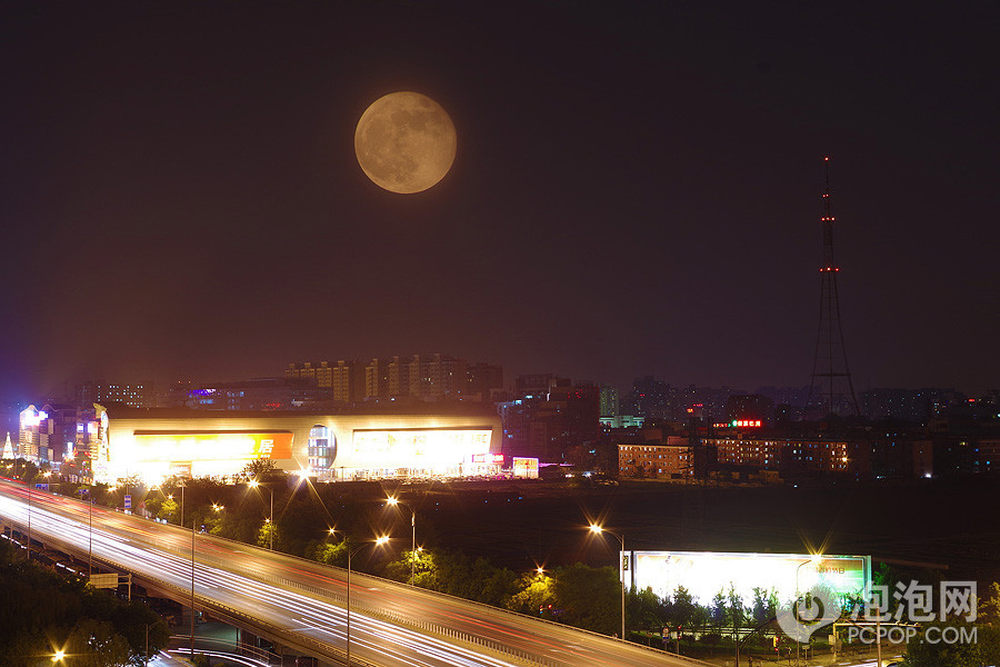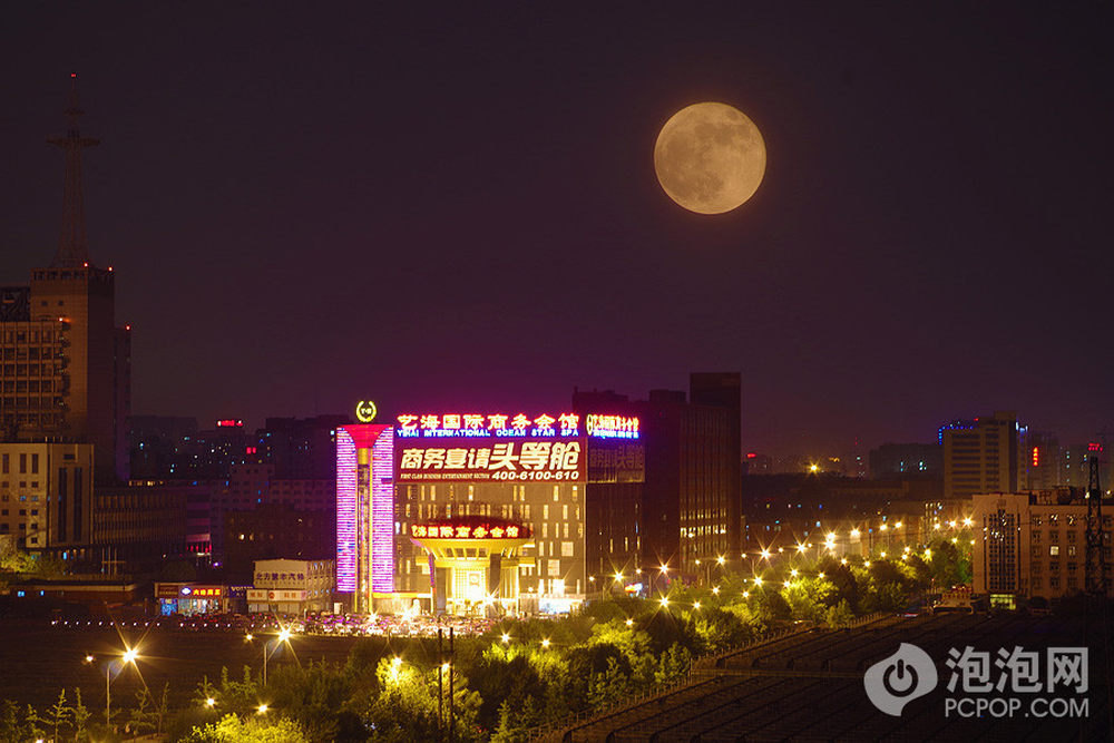 泡泡网数码相机频道5月8日 超级月亮是满月(或新月)与近点月同时发生的近点朔望月。这是描述月球在椭圆轨道上绕着地球公转,行经近地点之时,同时又在日地联线上的专有名词。超级月亮往往会引发海洋、地壳和潮汐的变化,例如地震、火山爆发。超级月亮的说法始见于1979年,为占星家理查德.诺勒所定义。经多年修正后,该天象指的是:新月或满月时期,月球与地球间距离较平常为近,换言之,也就是地球与月球间距离低于或接近35.4万公里。
