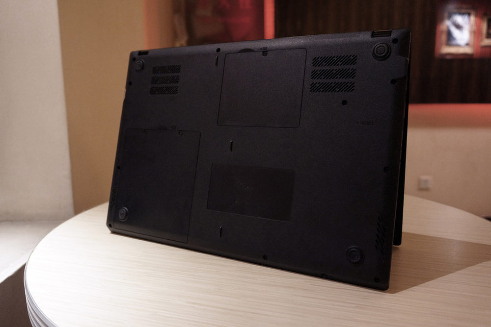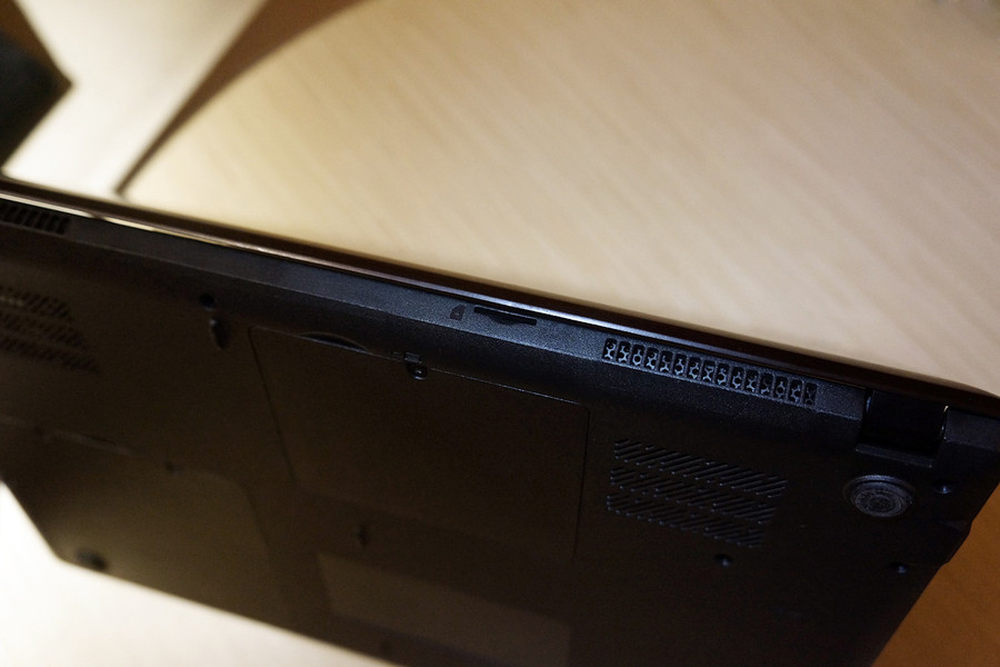 海尔X6机身底部采用了快速拆卸设计,这一点和市面上大部分的超极本都不一样,虽然密封性会降低,但是用户更换硬盘和内存也会更加方便。由于是工程样机,因此机身底部的铭牌也没有任何参数。17/17