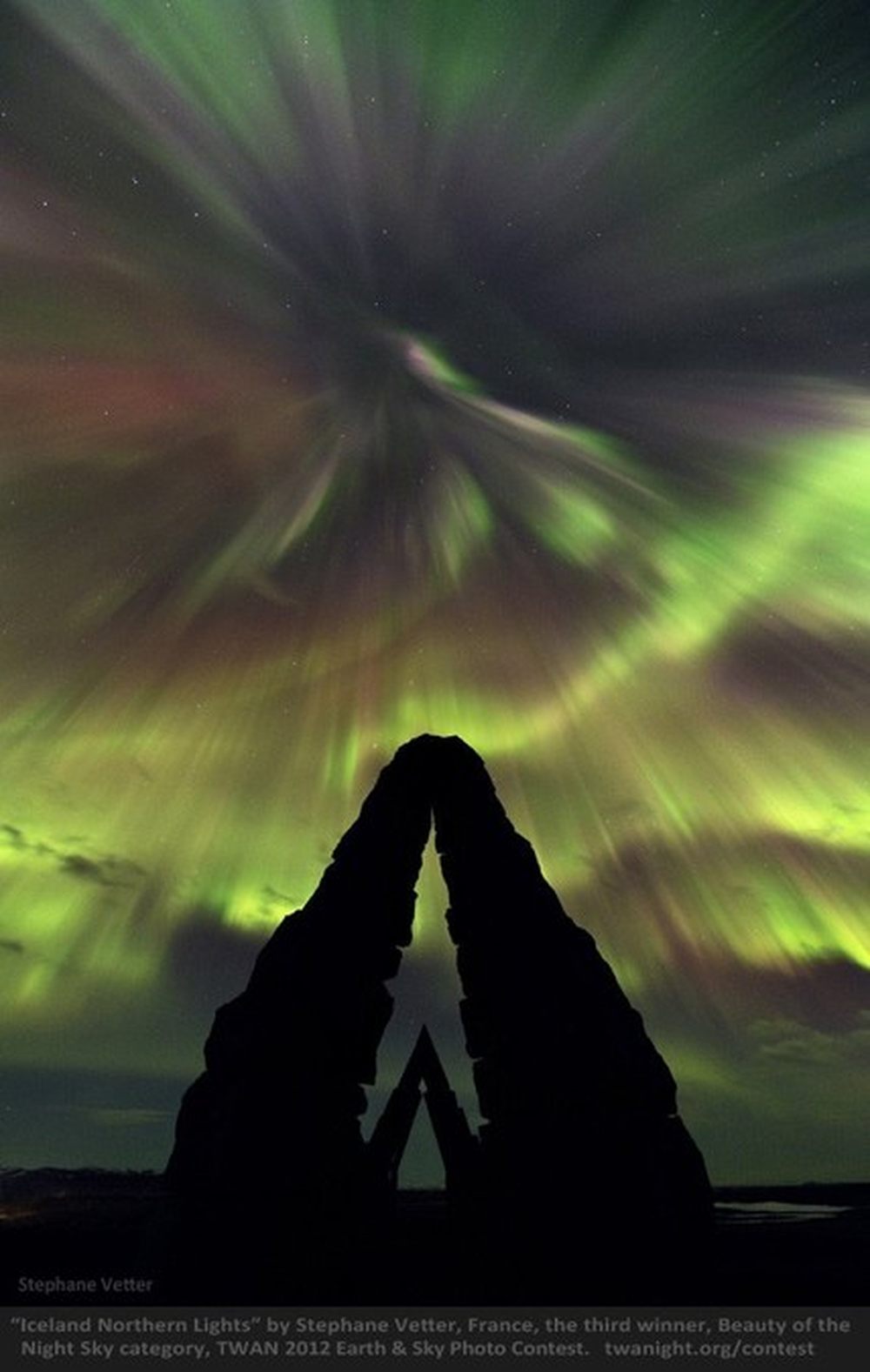 在这组照片中,Jia Hoa的鱼眼照片Lovejoy夺得了第一名,这张照片拍摄于2011年12月,记录了一颗彗星划过澳大利亚夜空的画面。Stephane Vetter,则以北极光和银河系等照片曾获得了去年的第一名;而她拍摄的冰岛北极帽之光则为其赢得了今年的第三名。