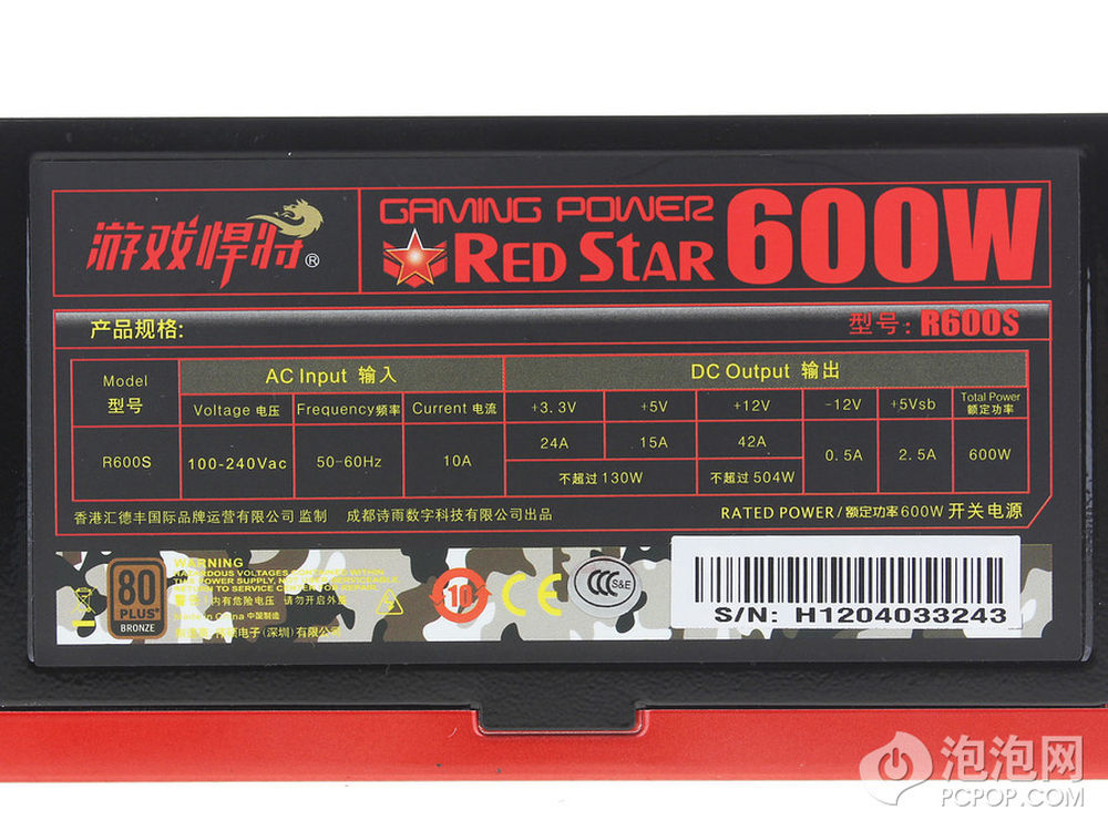 600瓦电源在EPS2.92中规定的12V至少要达到576瓦,这一点上红星600S的504瓦还是有一定距离。5/22