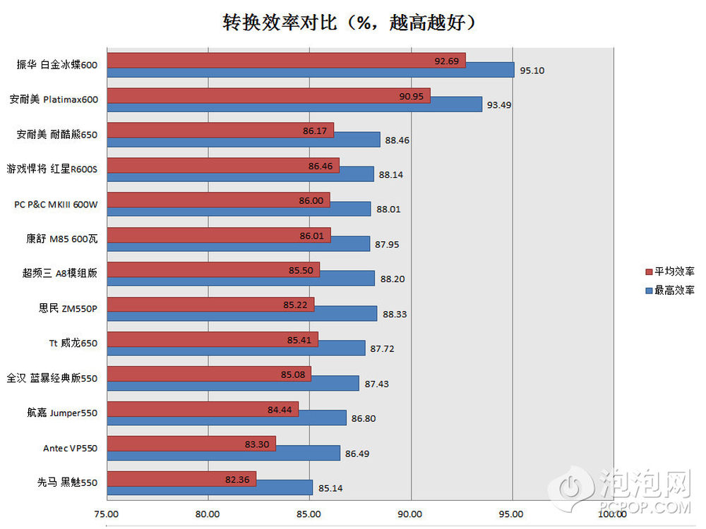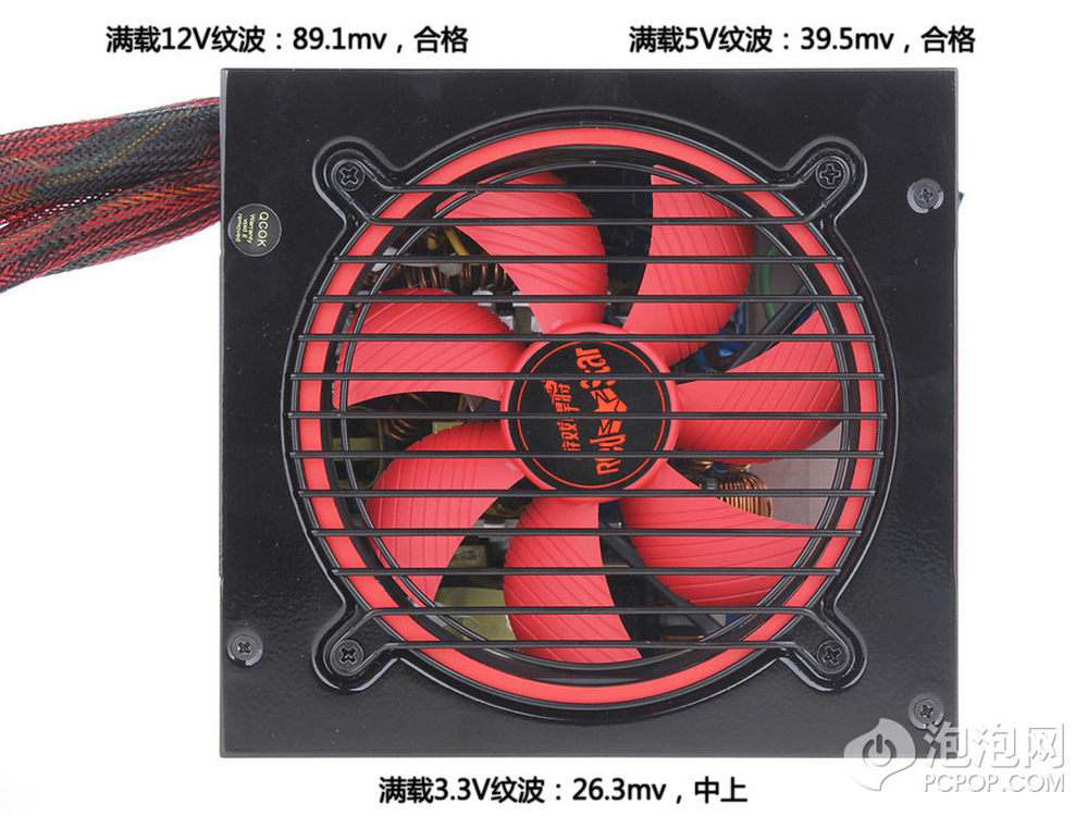转换效率奇高,恐怕除了那些80PLUS金牌、白金牌外,再往下排就是它了。在第11页有各项性能的大排行,心急的网友可以跳到那里去。电源外壳炫酷,黑红搭配,连风扇罩都很有个性,不过这种风扇罩我们曾经也见到过。4/22