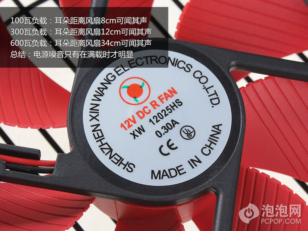 风扇在宣传中标注是采用“液态轴承”,这个就不多说了,工作电参数也标注了。总的来说除了满载外电源比较安静。9/22