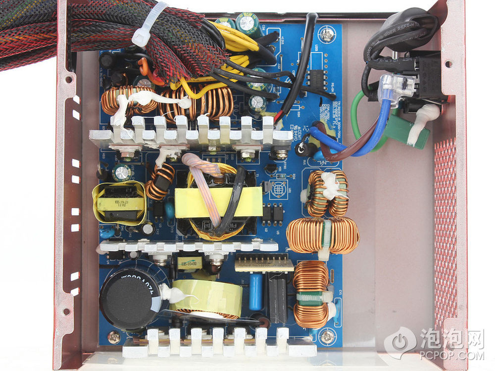 电源底面上印了12条比较突出的卖点,比较有份量的是全台系电容,之后打开看,一二侧全部采用TEAPO的产品,这对一个媒体报价只有379元的铜牌600瓦电源来说难能可贵。3/22