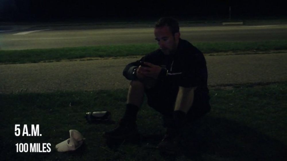 此时此刻已经用时19小时30分钟,而他前方还有12英里才到终点。27/28