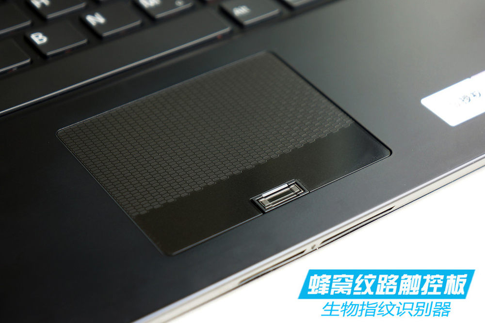 索尼VAIO Z的触控板表面采用了蜂窝状处理,下方的指纹识别器具备很高的安全性。14/26