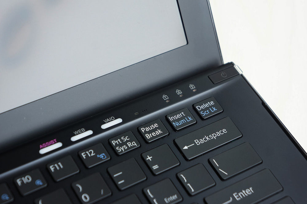 索尼VAIO Z键盘右上区快捷按键很多,左边三个是索尼笔记本上经常能看到的“帮助”、“快速上网”、“软件菜单”,最右边则是电源开关。中间则是数字锁定、大小写切换、滑动锁定三个状态指示灯和光线感应器。15/26