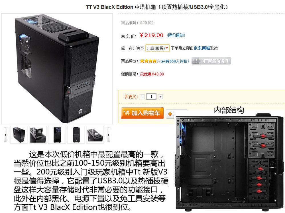 Tt V100机箱,售价99元。点此访问京东商城购买链接3/13