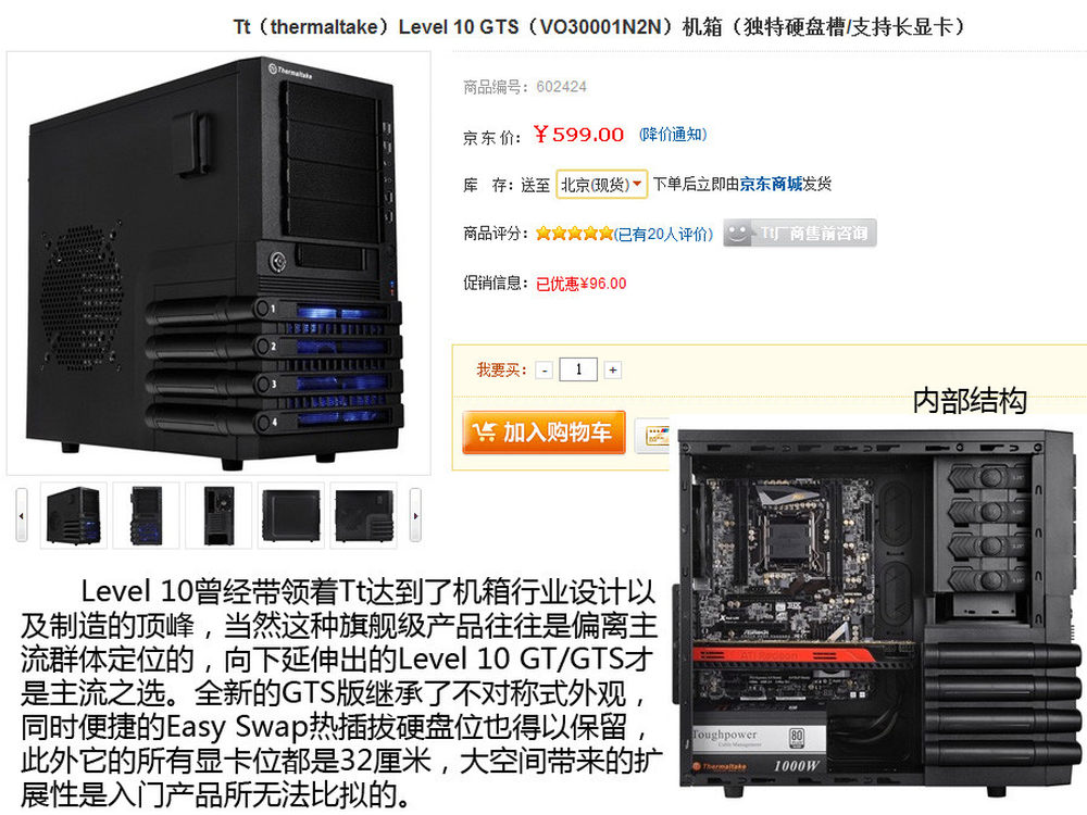 Tt Level 10 GTS机箱,售价599元。点此访问京东商城购买链接11/13
