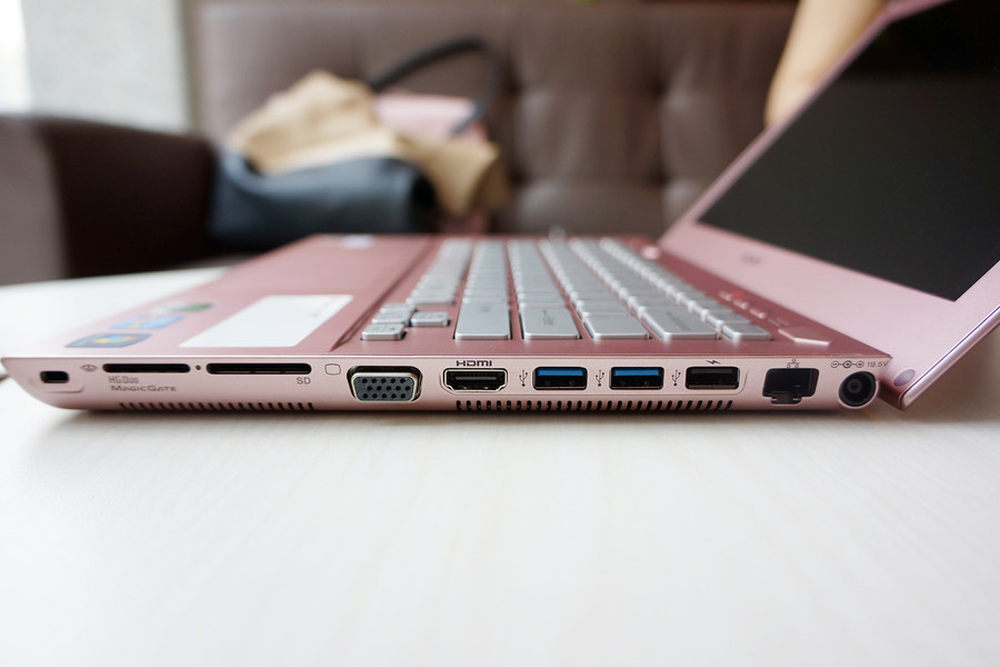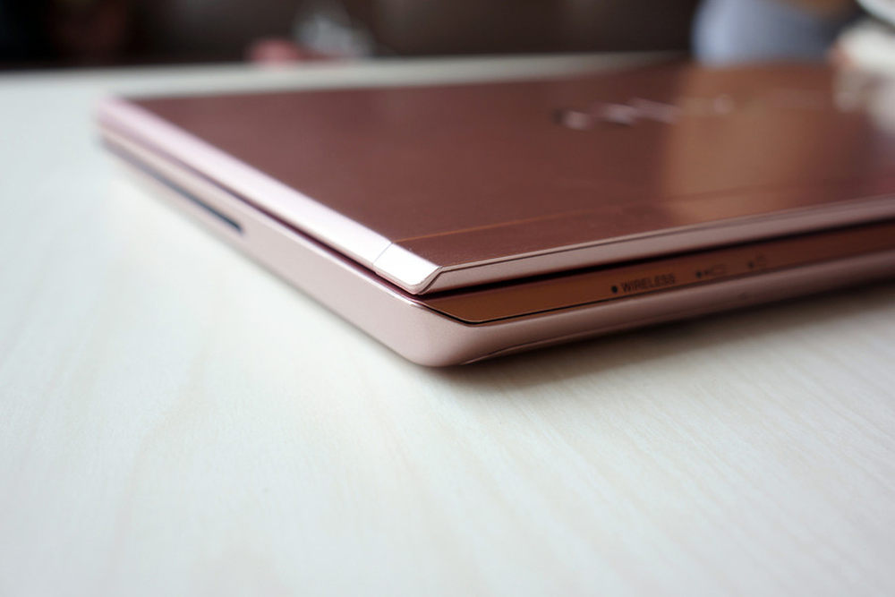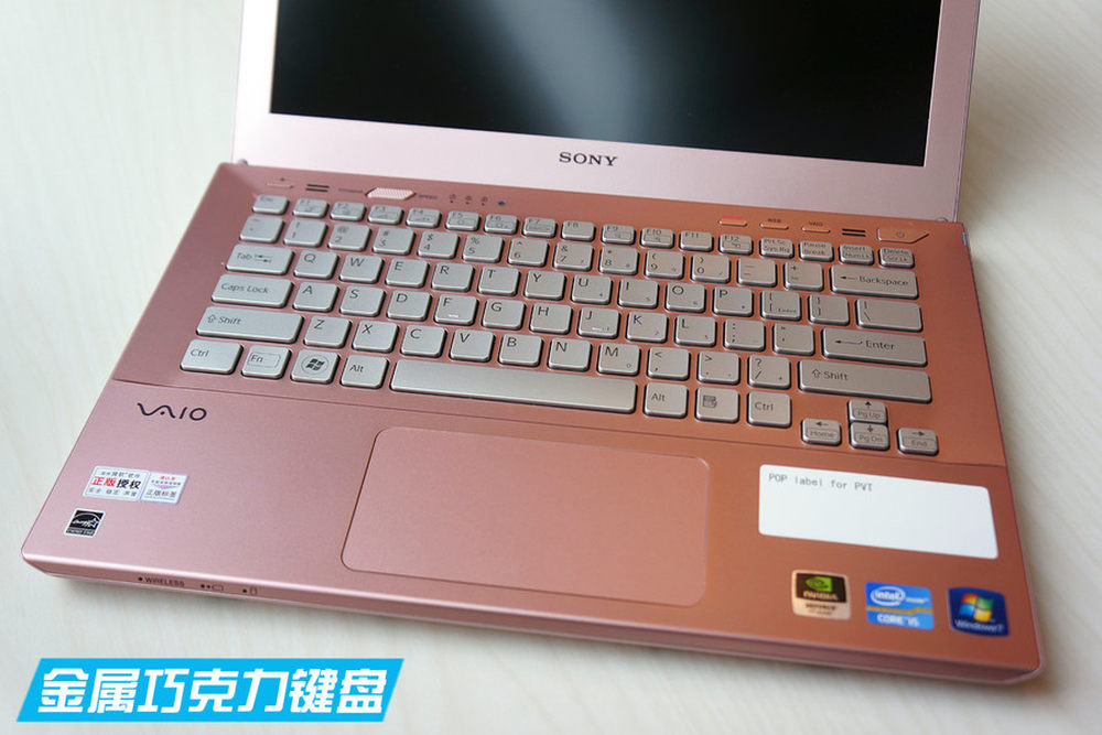 VAIO S延续了索尼的精致工艺,镁铝合金机身用料十足,六棱贝边设计个性鲜明。VAIO的经典标识依然设计在了A面最中间。这台粉色的S系新本非常时尚和讨喜。3/22