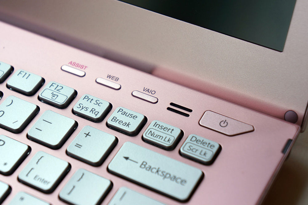 索尼VAIO S键盘右上区快捷按键很多,左边三个是索尼笔记本上经常能看到的“帮助”、“快速上网”、“软件菜单”,最右边则是电源开关。13/22