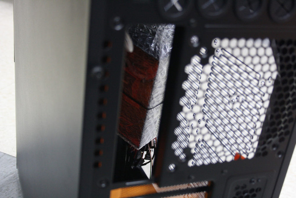 透过机箱背面,小编看到了一个近乎有电源那么大的附件盒,不知道艾乐酷魔蝎为大家提供了什么样的装备,看来会非常有料的样子。因为是评测预告,小编就不打开侧板SHOW结构了,先卖个关子,各位感兴趣的玩家不要错过下周的详尽评测。
