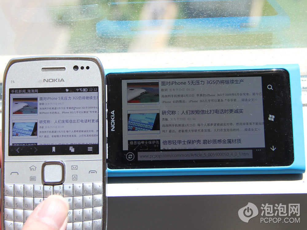 对比800的3.7寸480*800的分辨率,亮度不及E6也是正常,不过两者在阳光下的视觉体验都是不错的