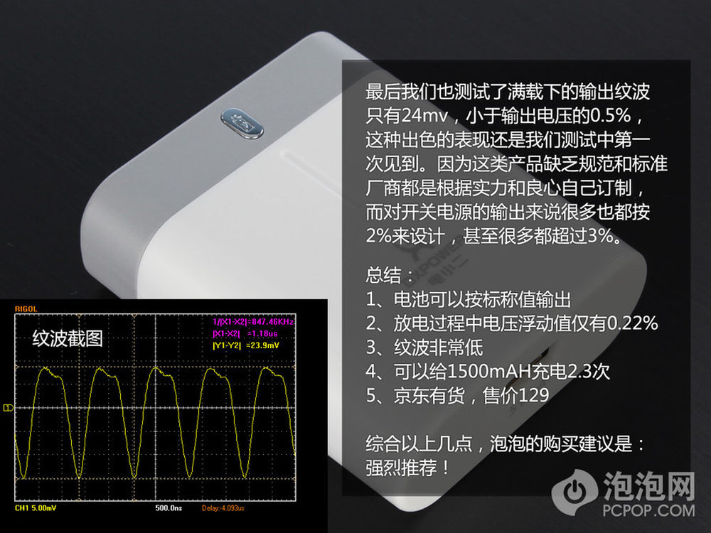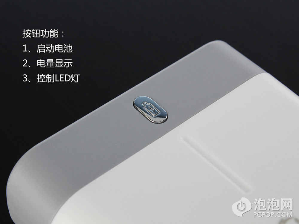 电池上只有一个按钮,有三种功能,用户拿到手中体验一下就知道如何使用了,比较方便。需要指出的是电池为了节省待机功耗,在没有负载的情况下持续1分钟就会自动休眠,所以在给手机充电时别忘了按一下开关充电才能开始。8/8