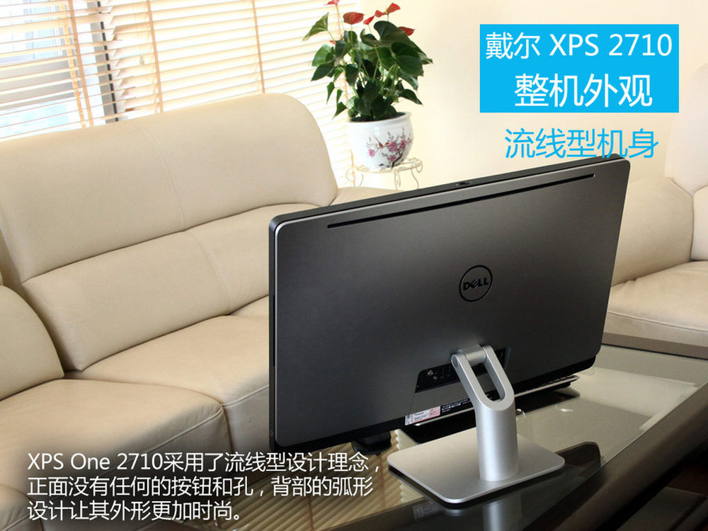 XPS One 2710采用了流线型设计理念,正面没有任何的按钮和孔,背部的弧形设计让其外形更加时尚。5/18