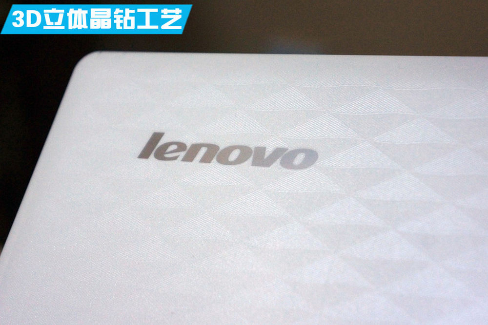 联想Z380顶盖表面采用3D立体晶钻工艺,多变的折射面让这款笔记本在不同的角度都能反射出神秘的色彩。5/20