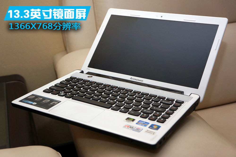 联想Z380采用了一块13.3英寸1366x768分辨率镜面屏,C面除键盘外同样采用了珍珠白配色。6/20