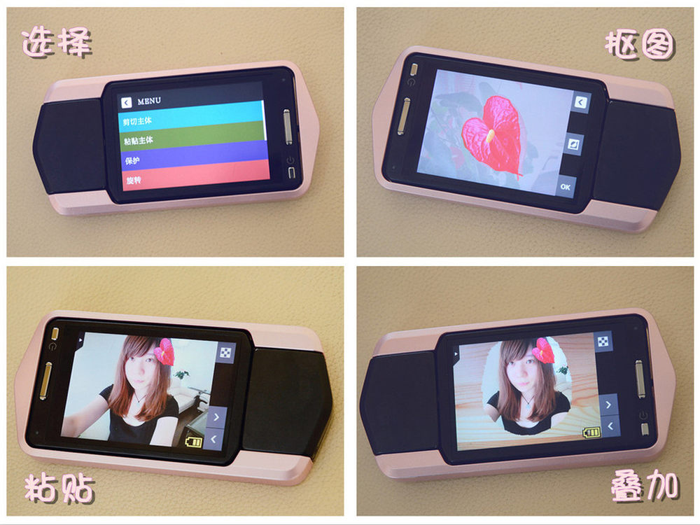 此次升级版自拍神器增加了抠图功能,拍完后还能享受DIY的乐趣。用手指或者附带的点触笔,圈出想要的主体物的轮廓,然后粘贴至其他照片,一张趣味照片便轻松完成。而且还可以拍摄不同花色的背景把之前完成的抠图照片叠加到背景上。17/31