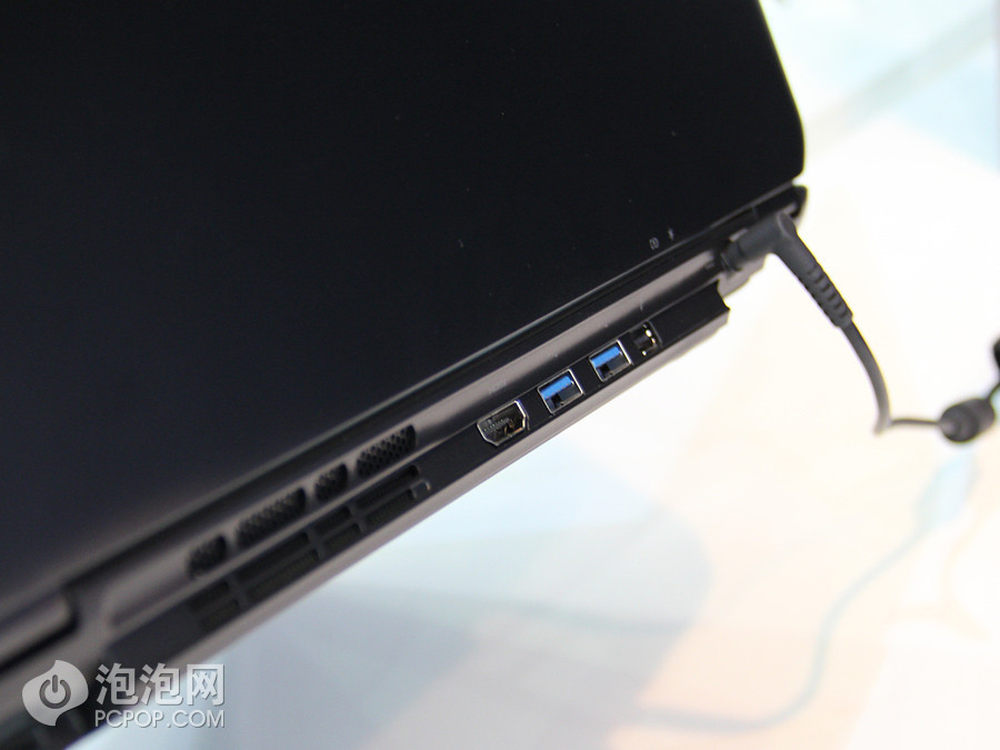 Acer S5超极本后侧接口被打开后的样子,从左至右依次为HDMI、两个USB3.0、Thunderbolt雷电以及电源插孔。15/15