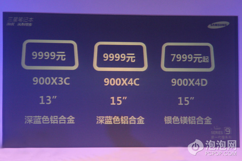 售价方面:13英寸深蓝色铝合金900X3C售价为9999元;15英寸深蓝色900X4C售价为9999元;由于表面材质与前两款略有不同,15英寸银色铝合金900X4D售价仅为7999元。13/20