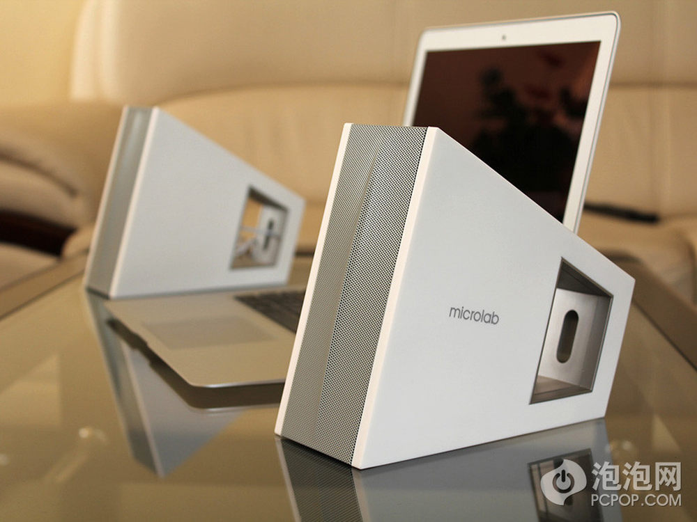 麦博FC10是近期刚刚上市的一款笔记本音箱,拥有多种配色款式,其中属白色款与银色的苹果本搭配最为合适,俯视的感觉是不是很好呢?3/15