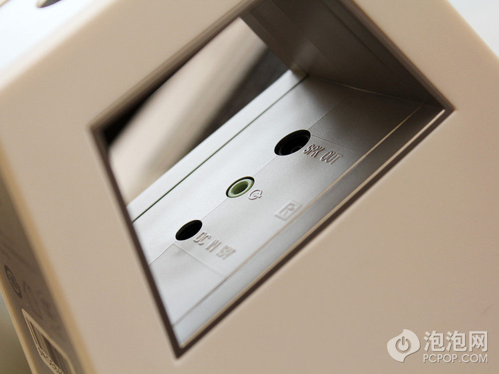 音箱的接口隐藏在主箱体的镂空设计处,由于镂空的空间较小,以至于连接线材时有些不便,在创新设计的过程中,难免会有一些小小的牺牲。9/15