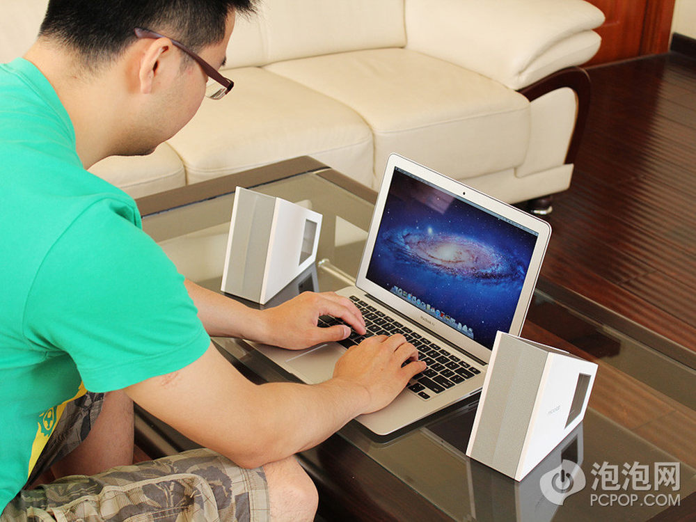 看到这样的音箱,第一个念头就是该用什么笔记本来搭配呢?想了一会儿,看来只有超薄的苹果本最合适。小编迫不及待的体验起来,没想到有一天屌丝也能用上这样组合的设备,幻想每一个工作日的早晨都可以这样办公,那该多爽。15/15