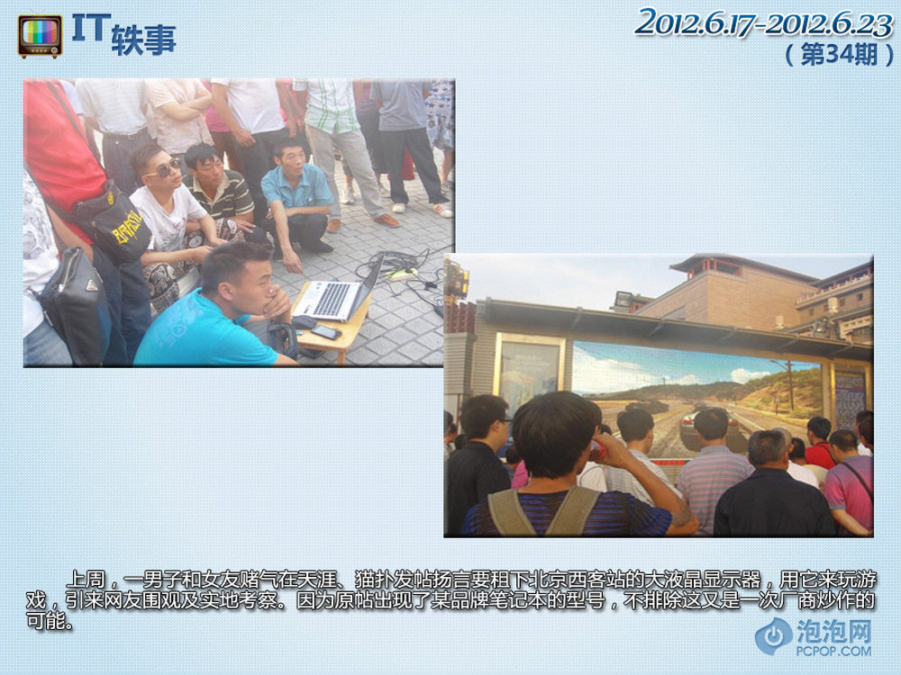 上周一男子和女友赌气在天涯、猫扑发帖扬言要租下北京西客站的大液晶显示器,用它来玩游戏,引来网友围观及实地考察。因为原帖出现了某品牌笔记本的型号,不排除这又是一次厂商炒作的可能。4/11