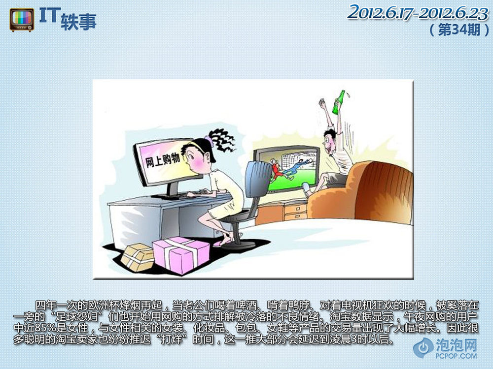 四年一次的欧洲杯烽烟再起,当老公们喝着啤酒、啃着鸭脖、对着电视机狂欢的时候,被奚落在一旁的“足球怨妇”们也开始用网购的方式排解被冷落的不良情绪。淘宝数据显示,午夜网购的用户中近85%%是女性,与女性相关的女装、化妆品、包包、女鞋等产品的交易量出现了大幅增长。因此很多聪明的淘宝卖家也纷纷推迟“打烊”时间,这一推大部分会延迟到凌晨3时以后。7/11