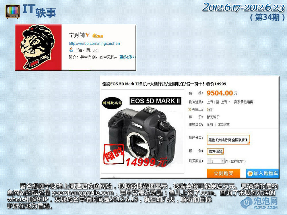 著名编剧宁财神上周遭遇钓鱼网站,根据微博截图显示,被骗金额可能接近万元。更搞笑的是钓鱼网站的域名是yuershanggoule.com,用中文表达就是:鱼儿上钩了.com。查询了该域名对应的whois和解析IP,发现域名申请时间是2012.6.19,就在前几天,解析的目标IP所在地为香港。6/11