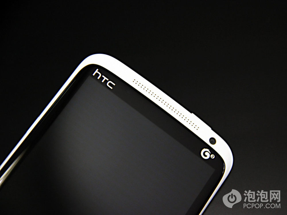 在屏幕左上我们可以看到HTC的标志,右上方则是中国移动TD标志。手机正面顶部的听筒没有采用金属网格的设计,而是融入到了手机外壳当中,这种一体成型的机身使得HTC One XT看起来更加精致完美。4/16