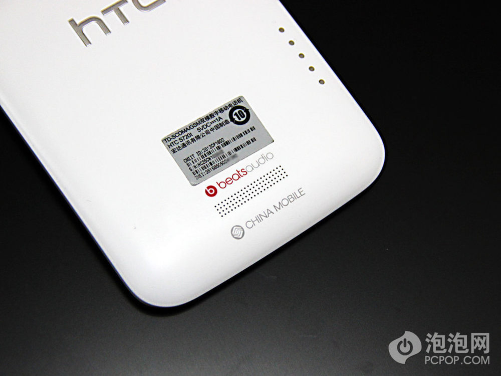 在手机背部下方的是扬声器,它的设计与之前我们提到的听筒相似,与外壳浑然一体,看起来非常精致。红色的Beats音效标志也说明手机在音乐方面的表现将会非常出色。手机背面最下方我们可以看到中国移动的标志。8/16