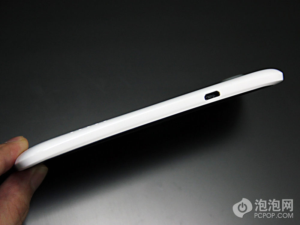 HTC One XT纯白色的机身很容易就让用户接受,在HTC One XT的机身四周采用的是钢琴烤漆工艺,柔滑舒适,让人爱不释手。在手机左侧的是数据线接口,在充电时同样使用这个接口。9/16