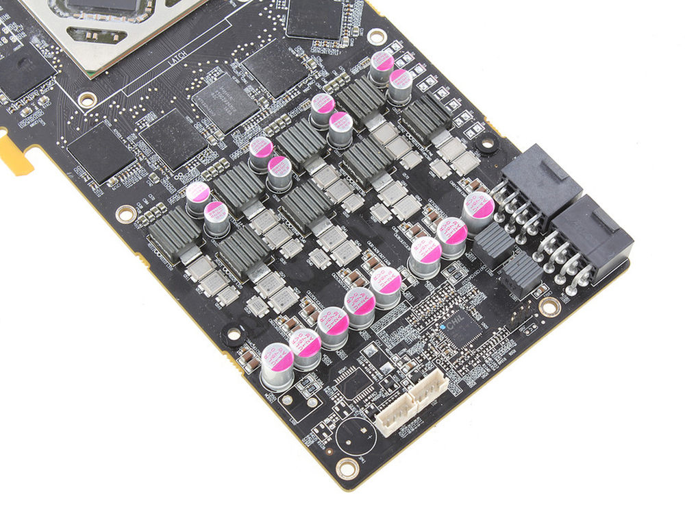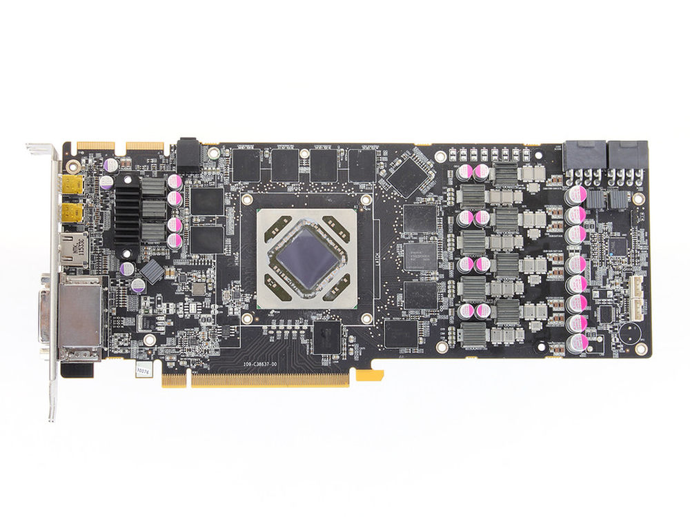 背面也配备了12颗GDDR5显存,组成6GB GDDR5显存容量。13/16
