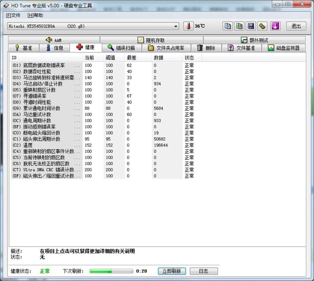 可以看到,在健康一项中,后面都会标有正常/异常的标示,所以对自己的硬盘健康情况可以时时保持监控。5/16