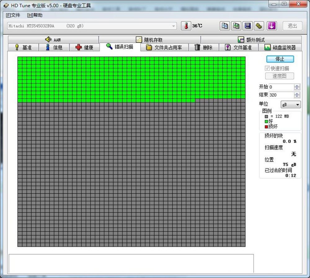 当你发现自己的硬盘读取写入有异常,就要用到这个功能了,否则一般的时候是不建议用“快速扫描”的,因为扫描的时间会很长(根据已硬盘容量的大小而定),假如扫描出来“红格子”特别多,则预示硬盘有坏道,那就要用专门的工具软件修复或屏蔽。坏道问题,硬盘用的时间久了就都有可能遇到,所以下面笔者也会为大家介绍修复坏道的软件。6/16