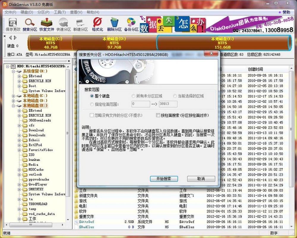 8、增强的已丢失分区恢复功能,恢复过程中,可即时显示搜索到的分区参数及分区内的文件。搜索完成后,可在不保存分区表的情况下恢复分区内的文件;