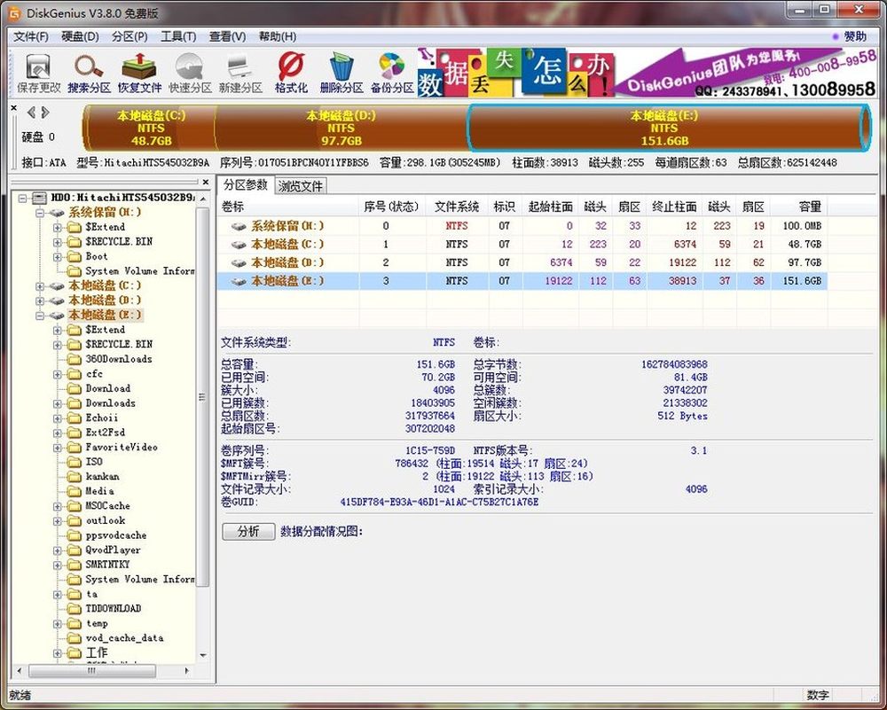 DiskGenius数据分配浏览可以让大家清楚知道自己的硬盘都在进行怎样的数据分配,方便大家进行合理的利用硬盘。10/16