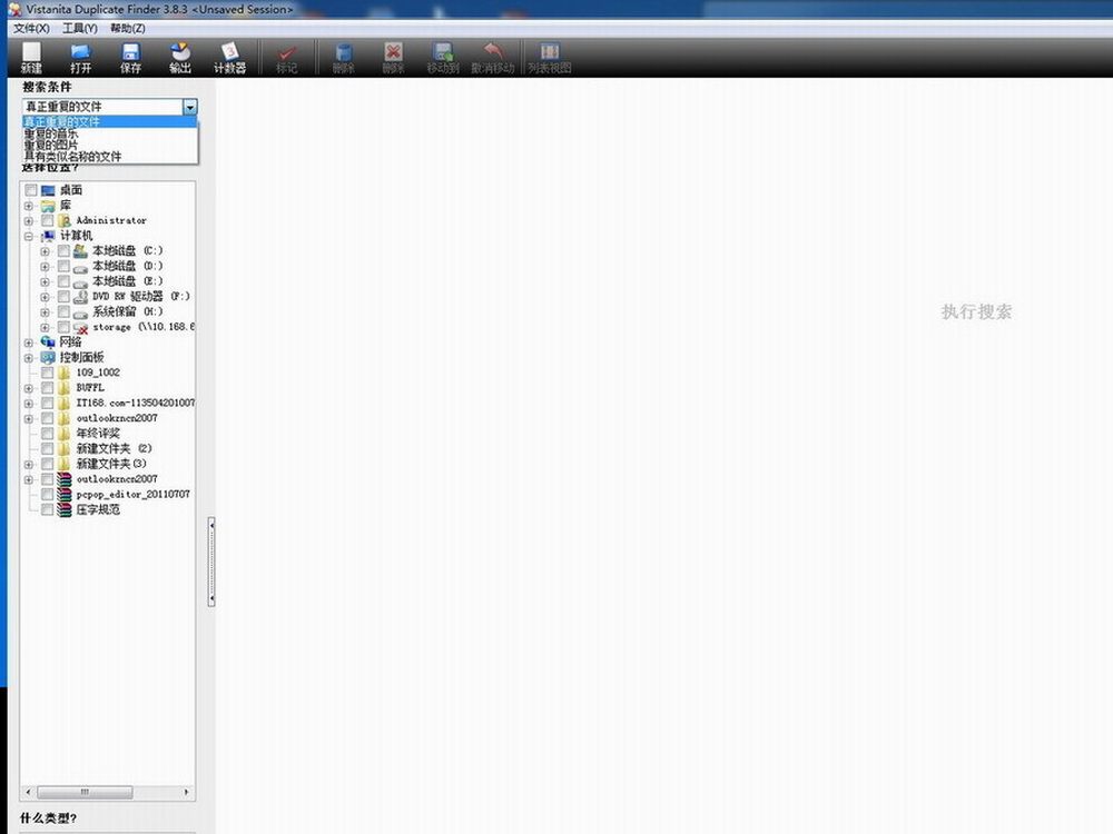 首先打开这个软件,可以选择有搜索条件包括(真正重复文件、重复图片、重复音乐与具有类似名称的文件)。16/16