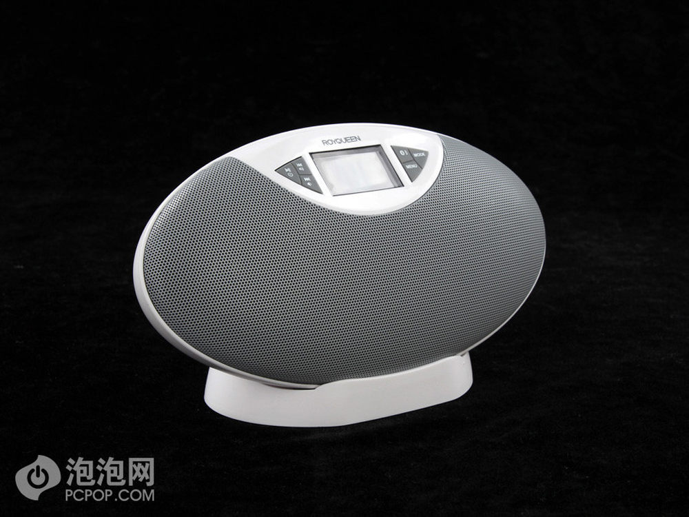 小箱体,橄榄球形,外观呈简洁白灰色,同朗琴龙猫的颜色相仿,小小的屏幕周围布满柔软的按键,通过底座的支撑使箱体微微倾斜,带给用户一个良好的声场空间。3/8