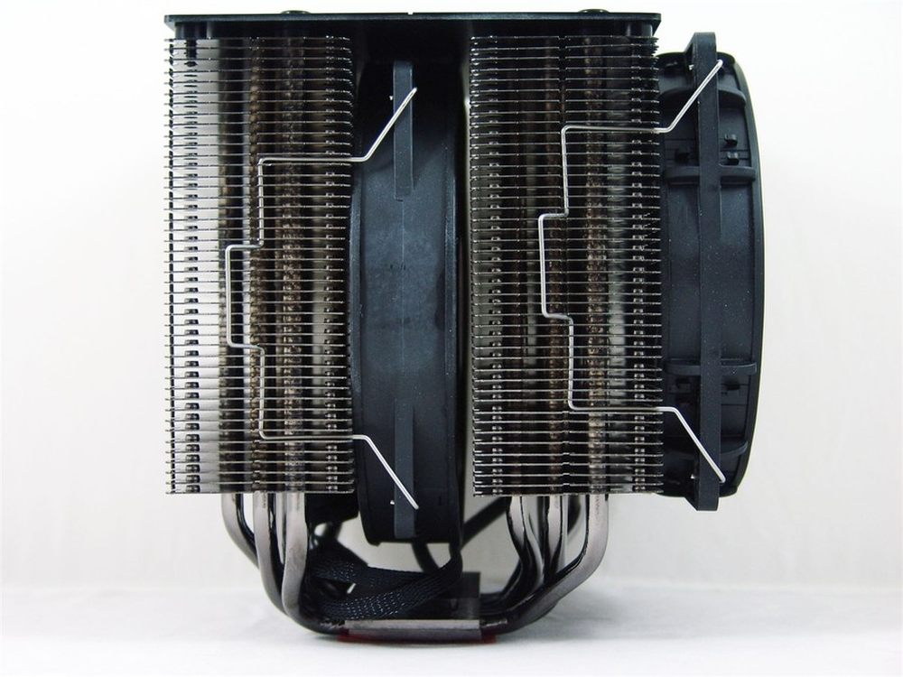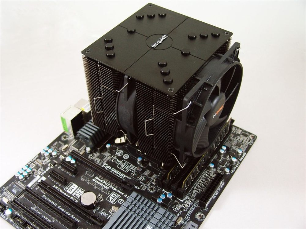 因为这款散热器极为宽大,因此覆盖到内存是在所难免了,比较彪悍的是它的前面120mm风扇似乎都已经覆盖了所有的内存插槽。好在散热器的底座与鳍片间距够大,不过钢牙内存可能会碰到兼容问题。11/11