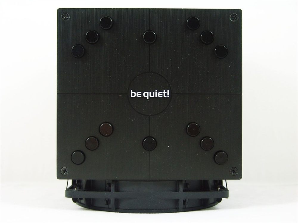 散热器的顶盖是拉丝处理的铝面板,准星板的纹理指向be quiet LOGO。散热器的热管顶端也安装了全黑色的装饰罩,这样一来近乎全黑的外观与机箱内部更加协调。7/11