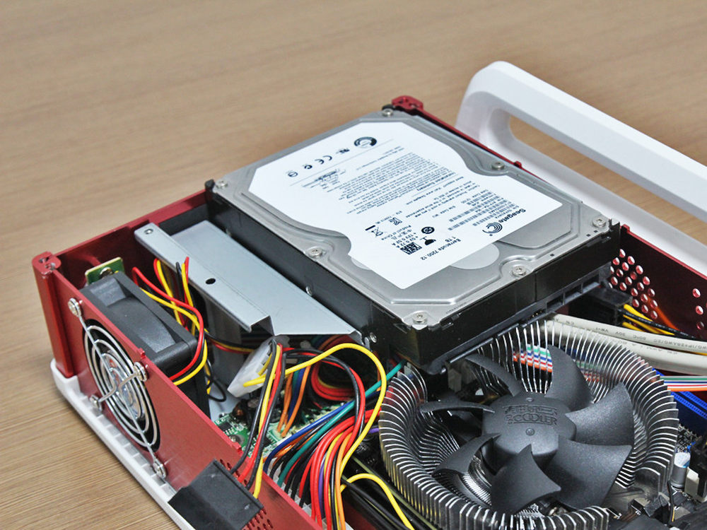 安装硬盘遭遇不幸,3.5英寸大容量硬盘无法与散热器兼容,只能退而求其次,使用备用的2.5英寸硬盘,此时大家可以选择使用笔记本硬盘或者固态硬盘,为了节约成本这里我们使用了笔记本硬盘。13/24
