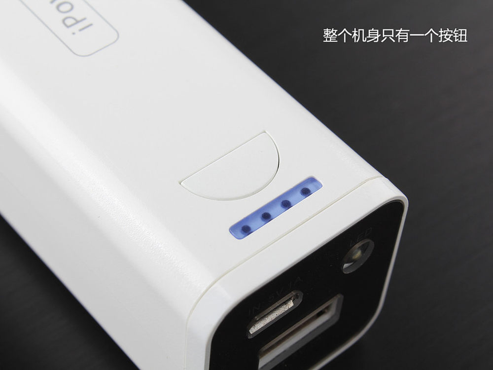 电池体上有一个开关按钮,在电池无负载放置30秒后会自动关闭,需要充电时只要按一次就可以开启。按键按住3秒后LED手电打开,再按住3秒就会关闭,充满电可以让LED工作240小时。充电和放电的标称值都是1A,充电采用Micro-USB口,如果你用的是安卓手机,那么一根数据线正过来用就是放电,反过来用就是充电了。5/11